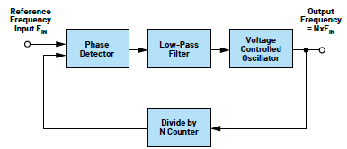 PLL是一種反饋系統(tǒng),用于調(diào)節(jié)或鎖定壓控振蕩器(VCO)輸出與輸入基準信號之間的相位差,如圖1所示。VCO是一種振蕩器,其輸出頻率是某個輸入控制電壓的函數(shù)。通常,當VCO用于PLL等反饋環(huán)路時,電壓頻率轉換函數(shù)必須至少是單調(diào)的。VCO的一個特例是電壓頻率轉換器(VFC),其電壓/頻率特性是線性的。反饋環(huán)路中的分頻器的分頻系數(shù)N一般是整數(shù),包括1,若為1則與沒有分頻器或從VCO輸出直連鑒相器輸入的情況相同。
