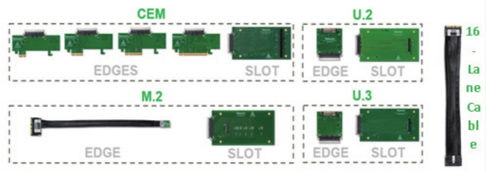 ? 支持多種多樣的硬件接口,如CEM、M.2、U.2、U.3等等,適配各種信號(hào)連接;