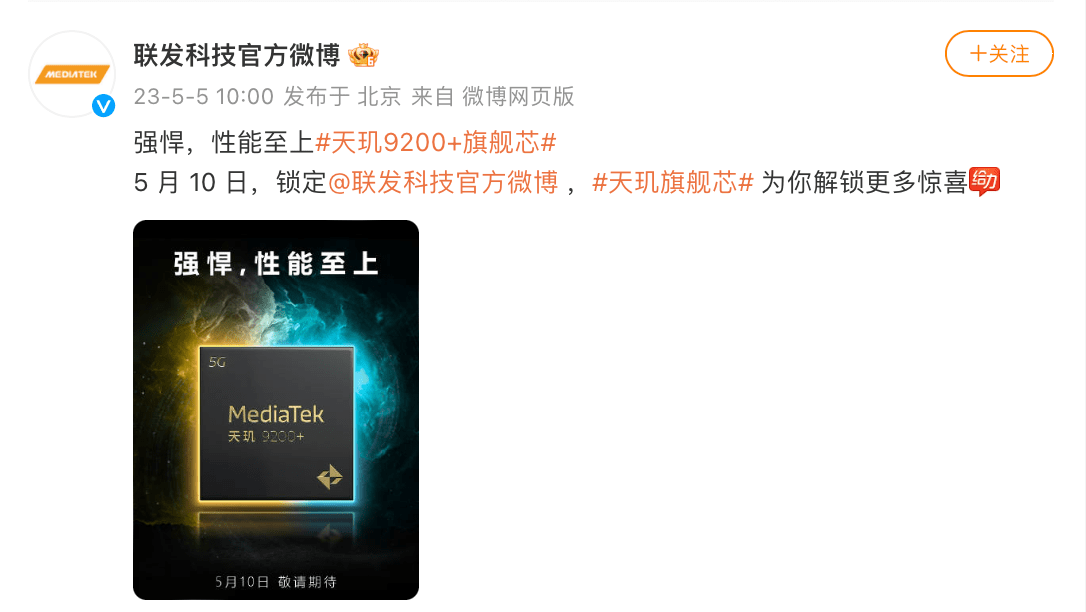 天璣9200+將于5月10日發(fā)布,性能測試連戰(zhàn)連捷,或iQOO Neo8 Pro首發(fā)