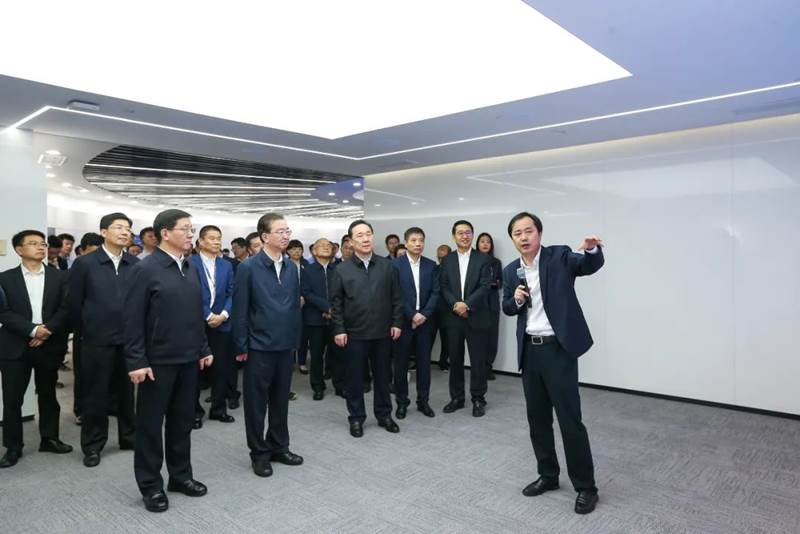杭州市委副書記、市長姚高員,浙江省政府秘書長徐大可,杭州市委常委、蕭山區(qū)委書記王敏等領導共同出席調研。新華三集團副總裁楊璽、王小魯?shù)燃瘓F高管陪同參觀。