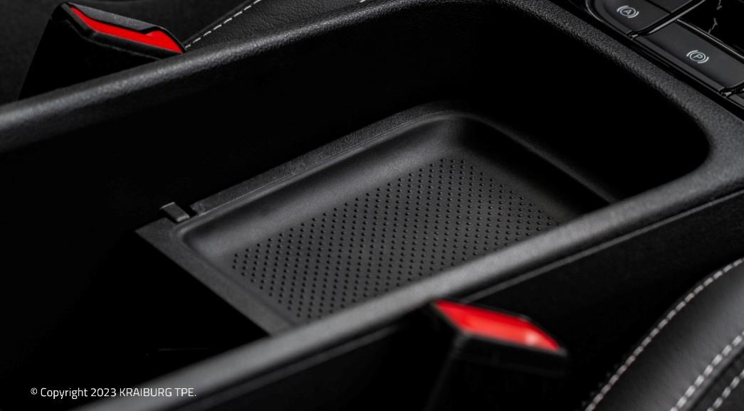 防滑墊是一種必備的內(nèi)飾件,旨在駕駛時能防止如手機(jī)、眼鏡、鑰匙等物品或配件滑落。由于TPE材料適用于功能和設(shè)計元素應(yīng)用,除了基本的防滑功能,該材料還具有優(yōu)質(zhì)的外觀表面和柔軟的觸感等特性,可以為防滑墊的設(shè)計畫龍點(diǎn)睛。