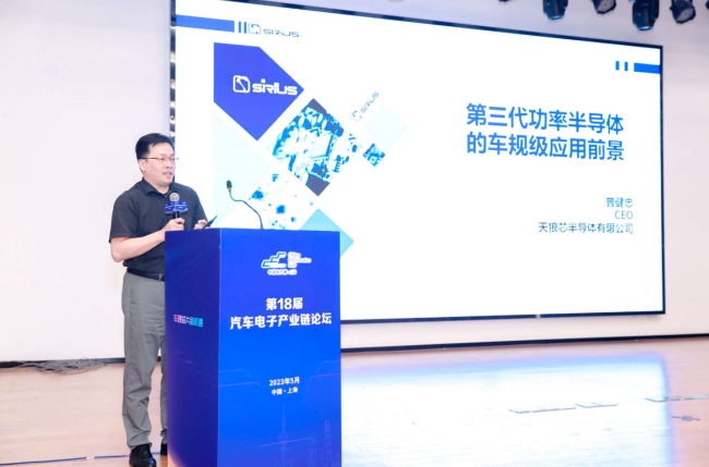 天狼芯半導體CEO曾健忠介紹該公司的第三代半導體產(chǎn)品及其車規(guī)級應用