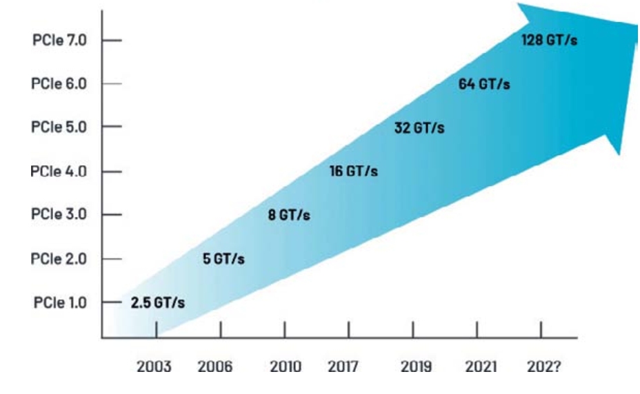 數(shù)據(jù)傳輸速率隨PCI Express的代際更新而升高