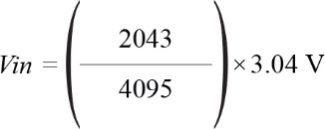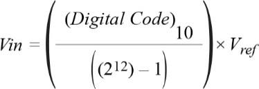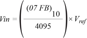 可以使用ADC轉(zhuǎn)換函數(shù)的公式檢查結(jié)果,其中MISO數(shù)據(jù)為數(shù)字輸出碼,示波器通道1上讀取的電壓為模擬輸入,示波器通道2上讀取的電壓為基準(zhǔn)輸入,N為AD7920的位數(shù)。