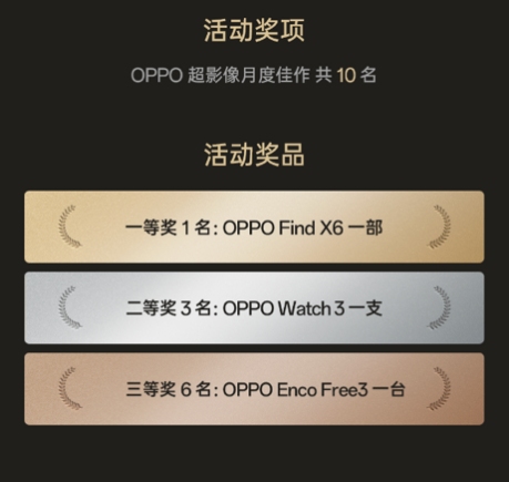 同時(shí),OPPO 2023超影像大賽仍在火熱進(jìn)行當(dāng)中,大賽開啟「咫尺」、「長夜熠熠」、「拾色」、「面孔」、「奇境」、「馭光」、「回味」、「人生章節(jié)」八大賽道,特邀專業(yè)評審團(tuán)坐鎮(zhèn),設(shè)置豐厚獎(jiǎng)品激勵(lì),最高可挑戰(zhàn)16萬元超影像獎(jiǎng)勵(lì)金。