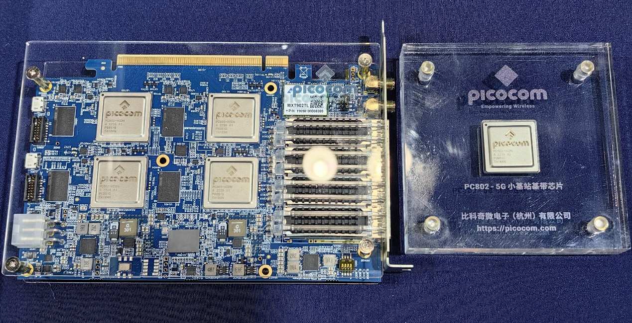 比科奇現(xiàn)場展示的PC802基帶處理器芯片和ORANIC基帶處理插卡
