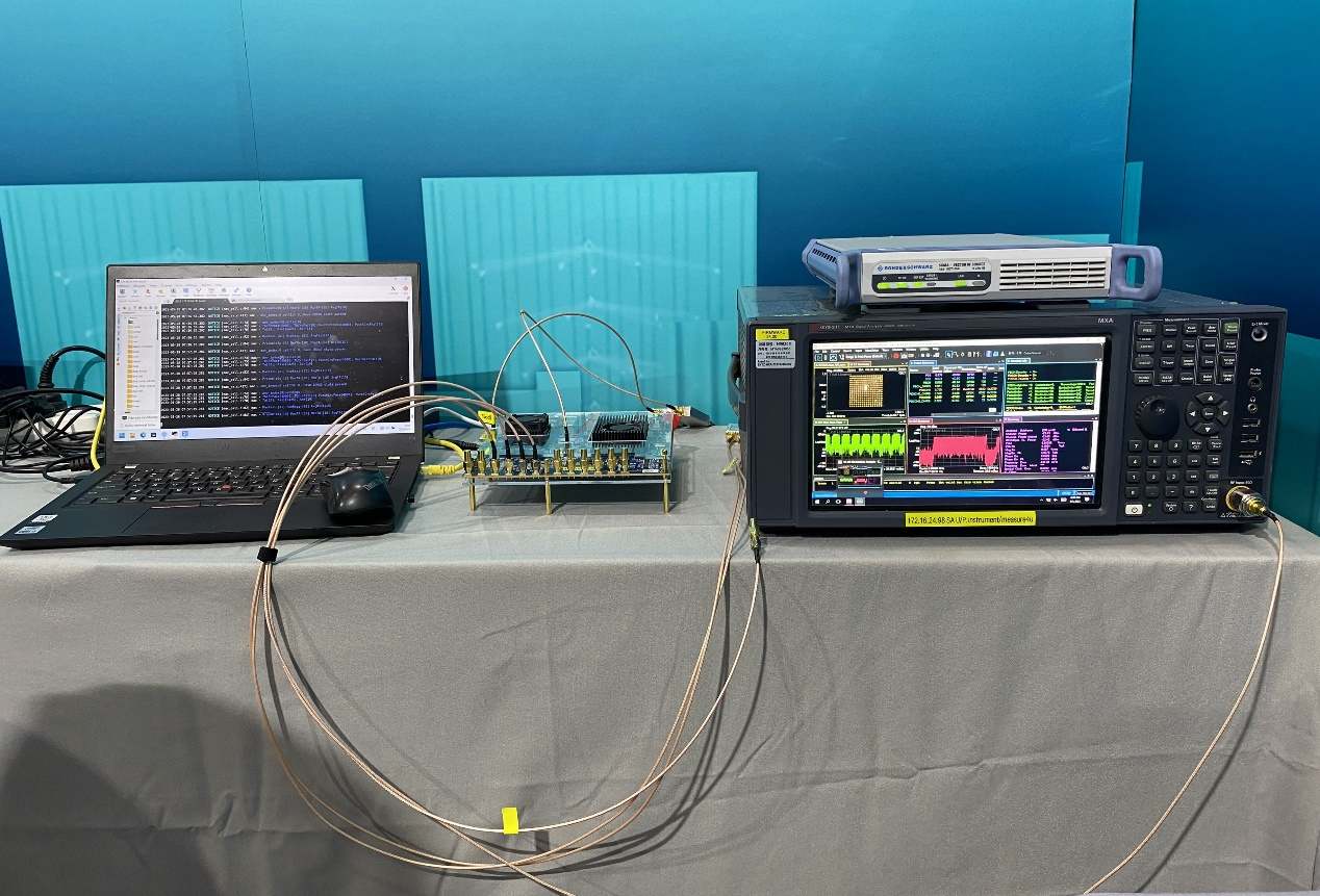 比科奇在PT展現(xiàn)場展示的5G+4G單芯片雙模系統(tǒng)演示