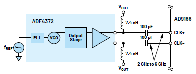 圖6.ADF4372和AD9166之間的電路連接