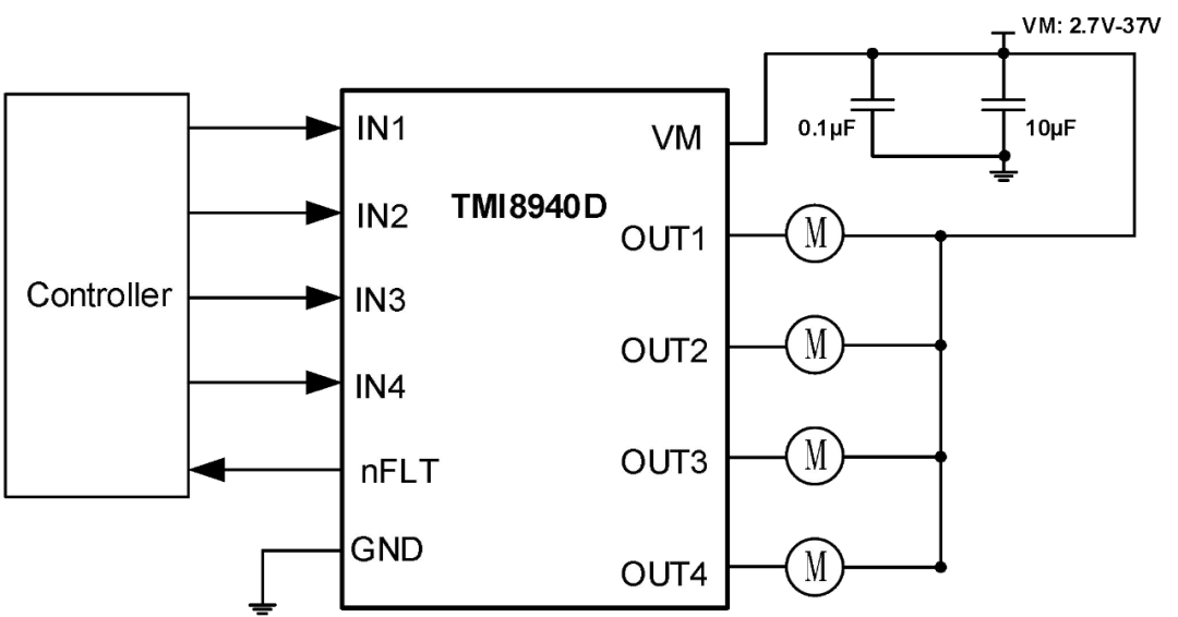 TMI8940D具備可輸入輸出并聯(lián)增強(qiáng)電流能力,主要應(yīng)用于驅(qū)動(dòng)電磁閥和低功率有刷電機(jī)等,適用于按摩椅上小按摩部位,如枕頭,腰靠、披肩等應(yīng)用場景。