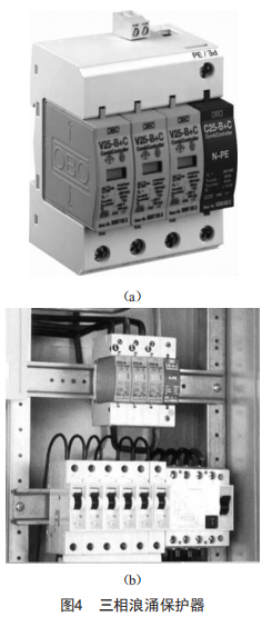 因此,應(yīng)該做好電梯自身防浪涌設(shè)計(jì),落實(shí)到位,有備無患。結(jié)合電梯所在的建筑物,將電梯納入整個建筑物的防雷體系中,形成多層次防護(hù),逐級削弱浪涌沖擊,從而提高電梯的浪涌抗擾度。圖4所示為在電源端加裝的浪涌保護(hù)器。