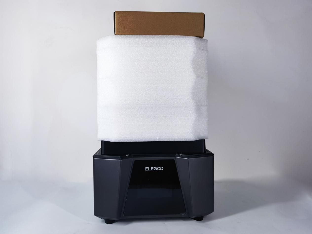 首先對ELEGOO土星3U進行開箱,打開箱子,可以看到機身嵌在一圈泡沫里,我們先把主機取出。