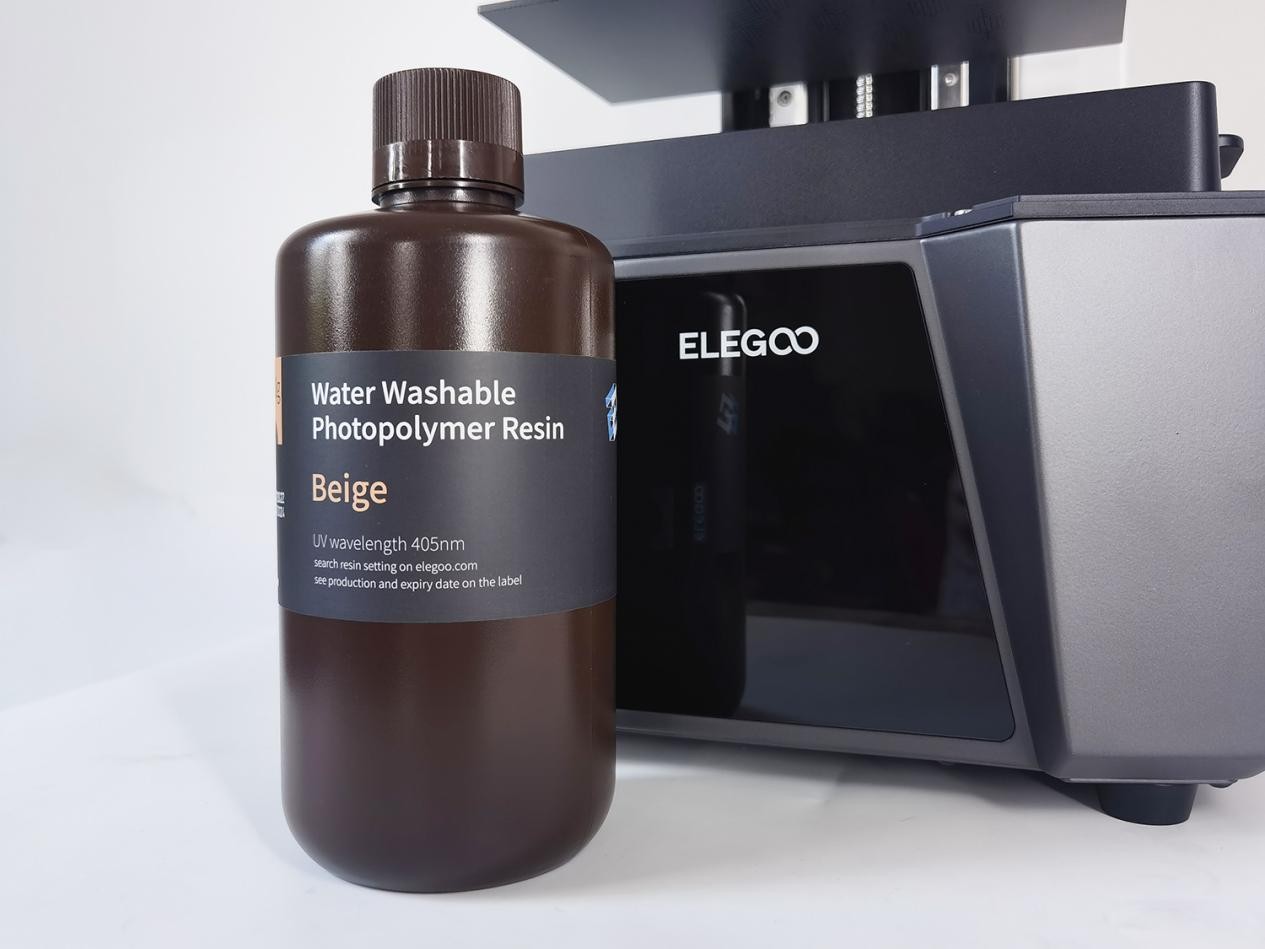 同時,ELEGOO土星3U還隨機配備了一瓶1000g米色的可水洗光敏樹脂。