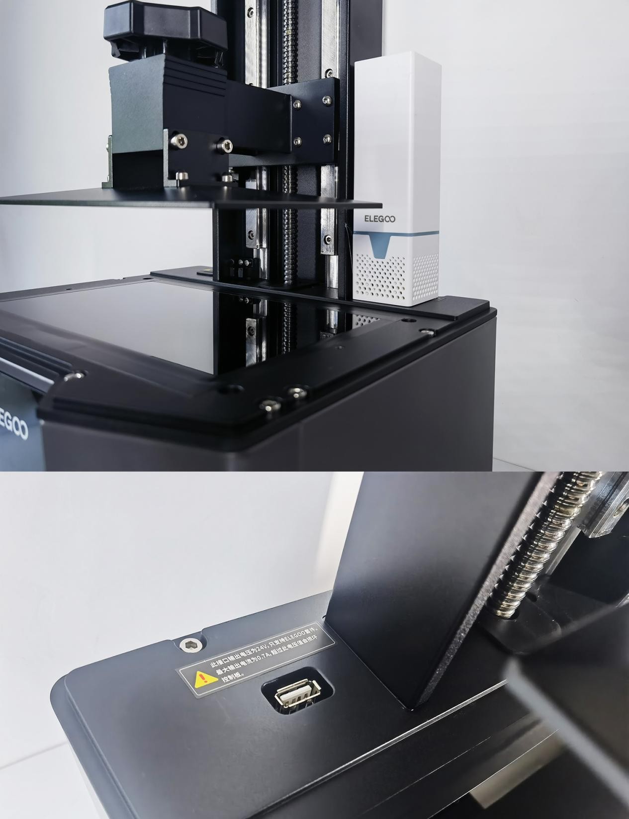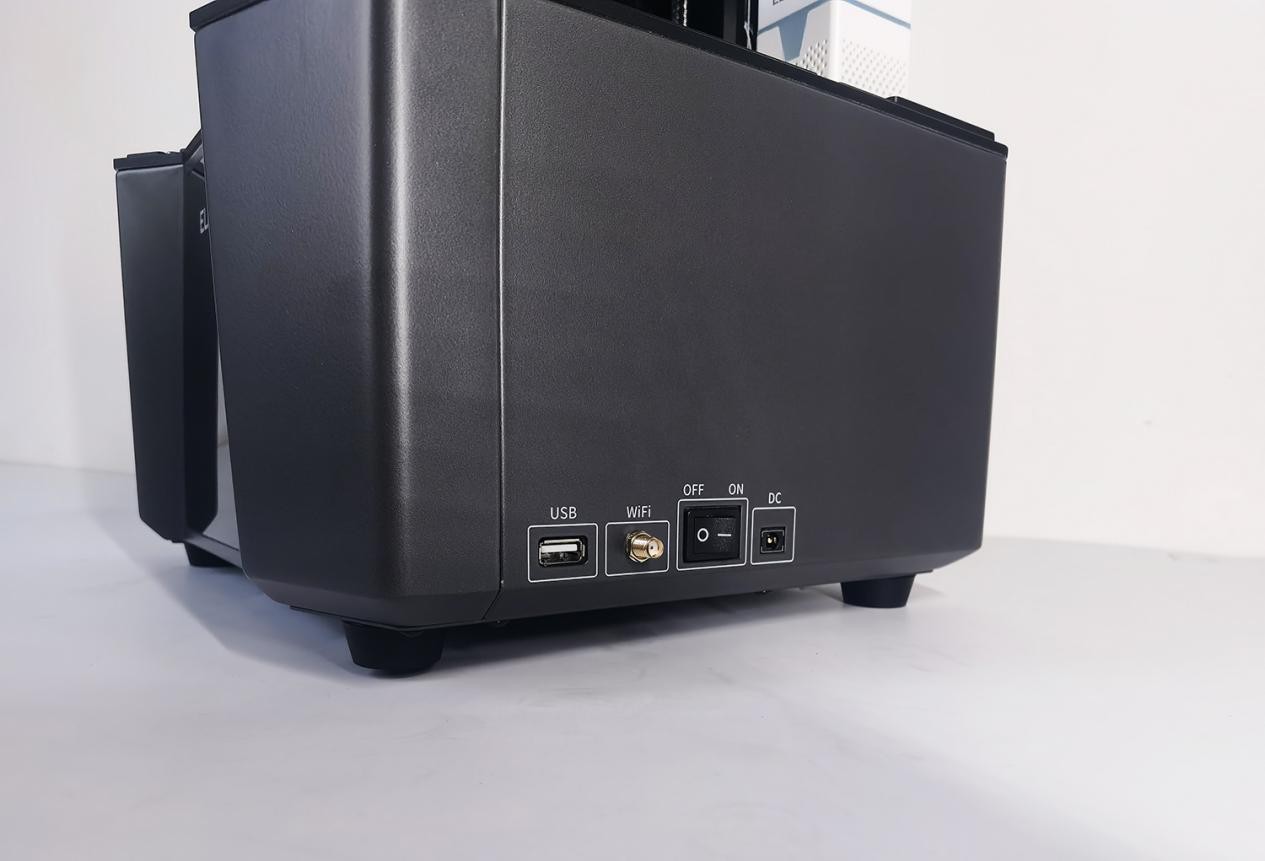 ELEGOO土星3U另一側則依次是USB孔、WiFi插口、電源按鍵和電源接口。