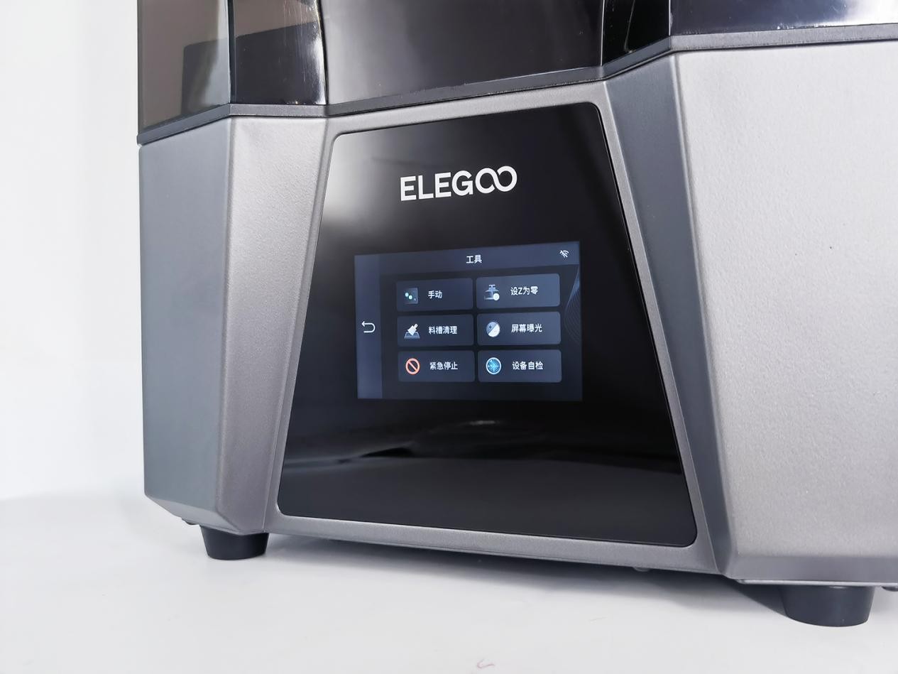 ELEGOO土星3U的機身正面配備了一塊4英寸高清IPS電容屏,通上電源,按下電源按鍵,機器啟動后,就可以在屏幕上操作。ELEGOO土星3U的這塊屏幕采用全新UI界面設計,整個操作流暢自如,體驗人性化。