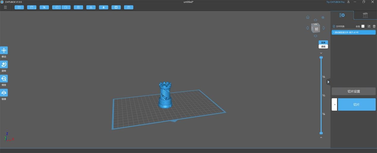 CHITUBOX的軟件界面如上,從上面可以看到ELEGOO土星3U的平臺大小。因此打開3D模型軟件時,要注意模型在平臺的大小位置和空間,只要不超出平臺邊界即可。