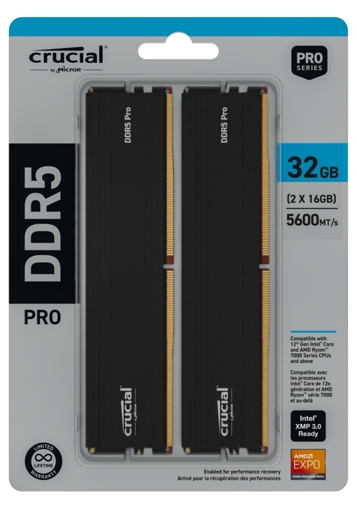 Crucial 英睿達(dá) Pro DRAM 支持 Intel XMP 2.0 或 3.0 以及 AMD EXPO?各個模塊,以便在 CPU 在兩個或四個 DIMM 配置中提高內(nèi)存速度時恢復(fù)性能。Crucial 英睿達(dá)是僅有的在同一內(nèi)存模塊上支持 Intel XMP 和 AMD EXPO 以大幅提高跨平臺性能的內(nèi)存品牌10,可為用戶提供靈活性,將 Crucial 英睿達(dá) DDR5 Pro DRAM 集成到 Intel 或 AMD PC 構(gòu)建中。簡化的產(chǎn)品 SKU 還可降低渠道合作伙伴和分銷商的庫存管理難度。Crucial 英睿達(dá) DDR5 Pro 內(nèi)存與第 12 代 Intel Core? 及 AMD Ryzen 7000 系列臺式電腦 CPU 及更高版本具有通用兼容性,而 Crucial 英睿達(dá) DDR4 Pro DRAM 與第 8 至 13 代 Intel Core 和 AMD Ryzen 1000 至 5000 系列臺式電腦 CPU 具有通用兼容性11。 Crucial 英睿達(dá) DDR5 和 DDR4 Pro 內(nèi)存均配備黑色鋁質(zhì)散熱器,即使在較小外形尺寸的 PC 上,也能在窄版模塊中提供時尚款式,同時提供散熱。