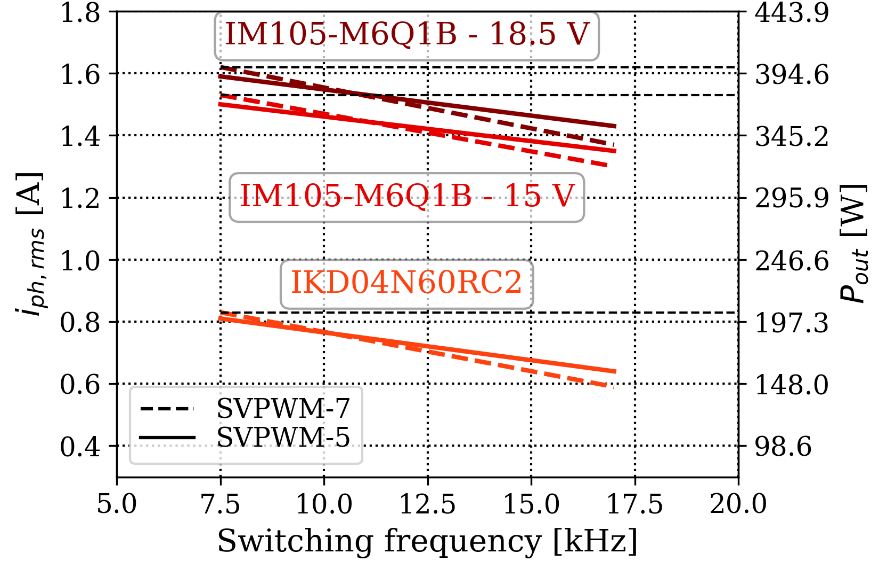 圖9:不同開(kāi)關(guān)頻率和調(diào)制方案下的最大允許相電流