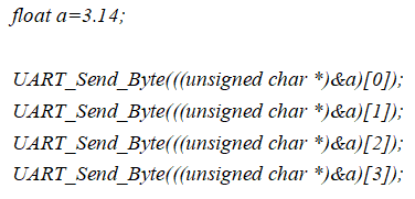 OK,關(guān)于整型比較容易理解。但是換成float,很多人就有些迷糊了。因?yàn)閒loat的數(shù)值表達(dá)方式有些復(fù)雜。有些人使用下面的方法來進(jìn)行浮點(diǎn)的發(fā)送。