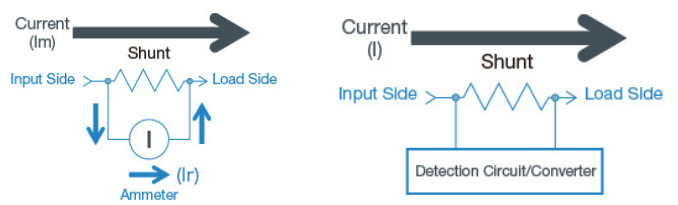 圖1. 檢流電阻器的分流配置與串聯(lián)配置