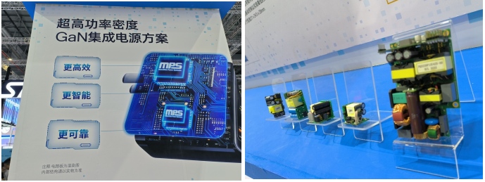 MPS作為電源管理的全球領(lǐng)導(dǎo)者,在PD市場有眾多領(lǐng)先的產(chǎn)品和方案。本次MPS的ACDC展區(qū)展示了一系列高功率密度氮化鎵(GaN)集成電源方案。