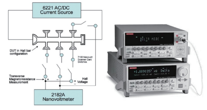 電阻率及霍爾效應(yīng)測(cè)試均是加流測(cè)壓的過(guò)程,需要設(shè)備能輸出電流并且測(cè)試電壓,這意味著同時(shí)需要電流源和電壓表,并且電流源和電壓表精度要高,保證測(cè)試的準(zhǔn)確性。