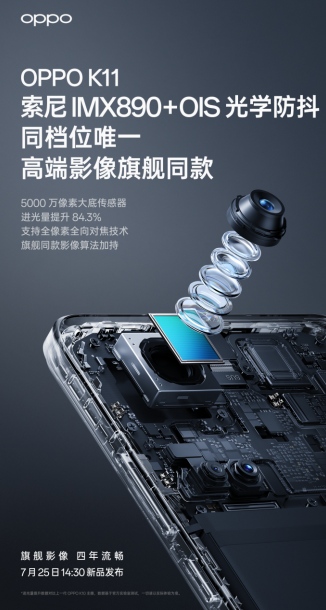 OPPO K11 將于7月25日發(fā)布:為5億大眾用戶普及旗艦影像