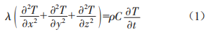 式中:入為導(dǎo)熱系數(shù)[w/(m·K)]:T為溫度(℃):p為密度(kg/m3):C為比熱容[J/(kg·℃)]。