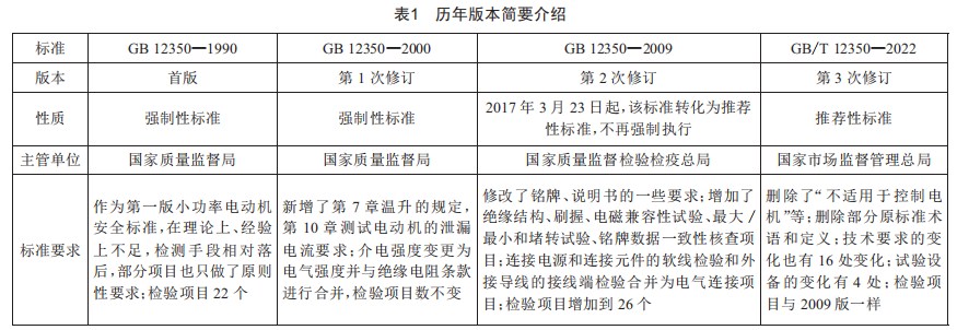 從1990年8月1日實(shí)施第一版《小功率電動機(jī)的安全要求》標(biāo)準(zhǔn)后,這次是第3次修訂,每一次修訂時在標(biāo)準(zhǔn)性質(zhì)、技術(shù)項(xiàng)目上都有不同的變化,如表1所示。