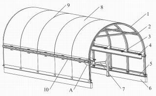 1一門架:2一橫梁:3一加強(qiáng)筋:4一鎖緊掛鉤:5一角鋼:6一地基:7一中間架:8一防護(hù)罩:9一弧形壓板:10一碳鋼壓條。