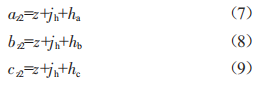 設(shè)3個基座與平臺之間的垂直距離分別為ha、hb、hc,可得: