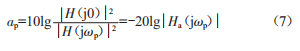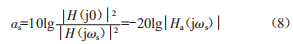 設通帶最大允許衰減為ap,阻帶最小允許衰減為as,其定義如下: