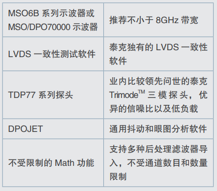 該測試方案的組成由泰克MSO6B系列示波器、探頭以及軟件構(gòu)成,MSO6B系列示波器具備優(yōu)異的性能: