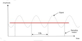 在任何采樣系統(tǒng)中,例如涉及ADC的測量系統(tǒng)中,有一種稱為混疊的現(xiàn)象,它可能導(dǎo)致處于較高頻帶的信號“向下折疊”到奈奎斯特頻帶,使其與目標(biāo)信號無法區(qū)分。奈奎斯特頻率是采樣速率fs的一半。由ADC采樣的電路帶寬應(yīng)小于采樣速率的一半。混疊會導(dǎo)致干擾信號和噪聲污染輸出,從而影響測量精度。圖1和圖2分別顯示了正確采樣(高采樣速率)和不正確采樣(低采樣速率)的例子。