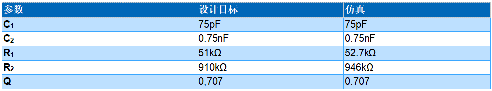 一旦選定并計(jì)算出電阻值,借助截止頻率的簡化表達(dá)式可以計(jì)算C的值,然后計(jì)算兩個電容的值。