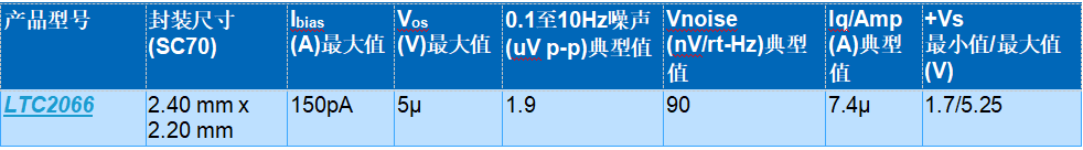 圖4中的電路包括LTC2066,它是一款10μA電源電流、低IB、零漂移運(yùn)算放大器,可以采用最低3.3V電源VDD供電。LTC2066采用6引腳SC70封裝。這種低通Sallen-Key濾波器用于對加速度計(jì)的輸出進(jìn)行濾波,以防止混疊到目標(biāo)頻帶中。