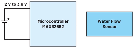 采用電池供電的電路必須具備高能效,這樣電池才能長時間持續(xù)供電。為此,應當選擇節(jié)能型元器件并將其整合到系統(tǒng)中。電路中的構(gòu)建模塊越少,整個系統(tǒng)的能效就越高。圖1所示的電水表就是一種電池供電設備。該系統(tǒng)采用MAX32662微控制器,僅有一個電源電壓。輸入電壓介于1.71 V和3.63 V之間。