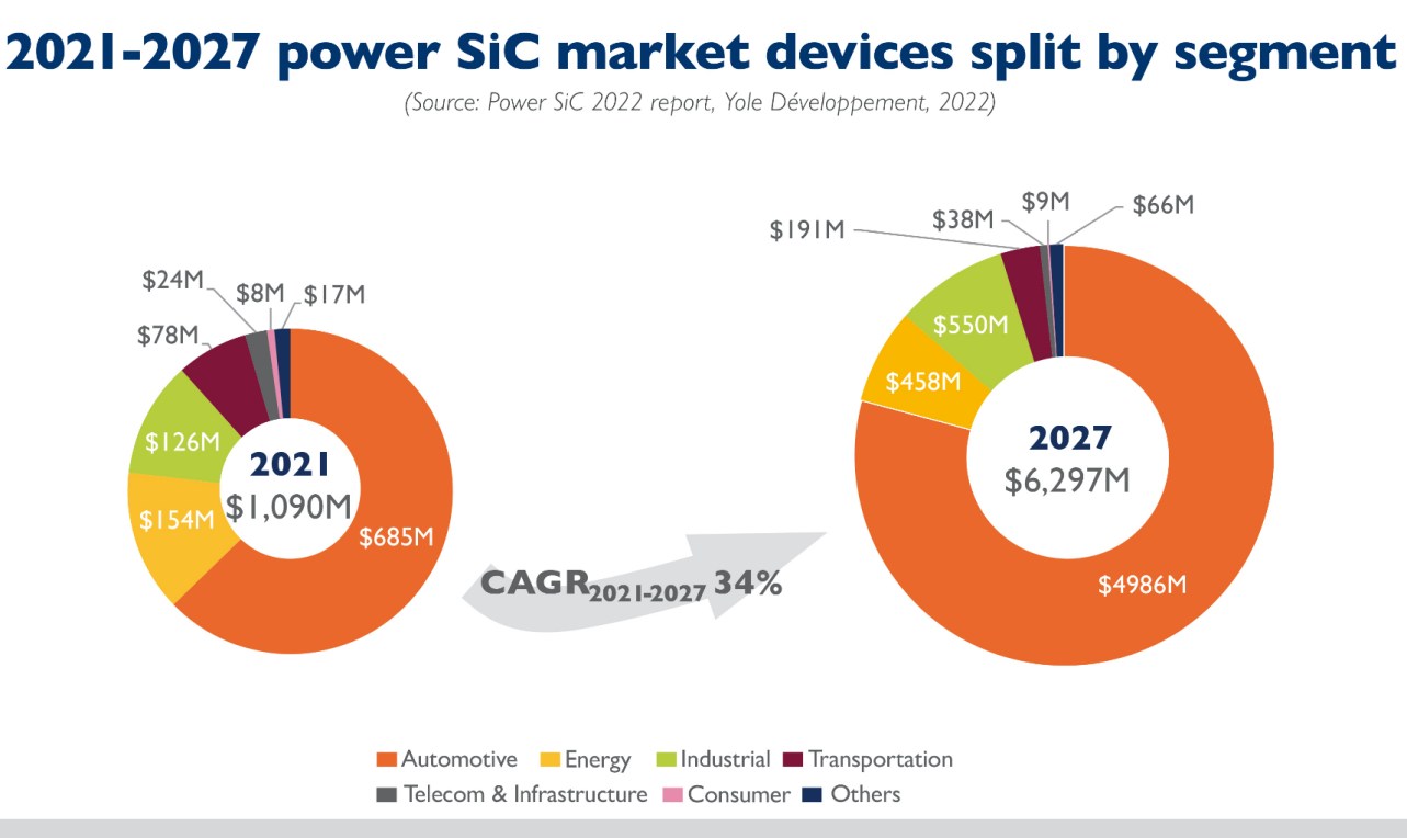 據(jù)Yole預(yù)計(jì),功率SiC市場規(guī)模將于2027年達(dá)到60億美元。憑借著更好的能效、開關(guān)速度和耐壓表現(xiàn),SiC將會(huì)在電動(dòng)汽車、可再生能源、工業(yè)等高能耗領(lǐng)域發(fā)揮巨大的作用,進(jìn)一步推動(dòng)整個(gè)社會(huì)進(jìn)入可持續(xù)發(fā)展的未來。