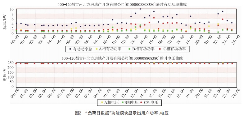 以失壓為例,如圖2所示,"負(fù)荷日數(shù)據(jù)"功能模塊下可顯示出用戶的功率曲線,而圖中的同期電壓曲線情況可以印證該方法的可行性。