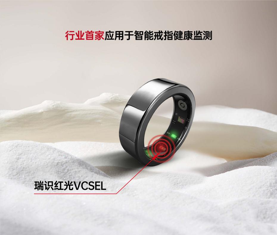 智能戒指要實(shí)現(xiàn)定位、指示和交互等功能的關(guān)鍵,在于其搭載的光學(xué)傳感器。瑞識積極探索紅光VCSEL的應(yīng)用場景,為客戶定制的高功率高光效紅光VCSEL,其發(fā)射的光可以透過皮膚測量睡眠健康、心率和血氧飽和度,這在運(yùn)動監(jiān)測和健康管理方面非常有用。此外,它的小尺寸和超低功耗也使其成為便攜式健康監(jiān)測設(shè)備的理想選擇。
