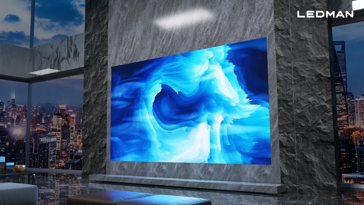 應用PM驅(qū)動玻璃基Micro LED顯示屏的220英寸雷曼超高清家庭巨幕分辨率為3840*2160,亮度達600nits,可視角度超過170°,色域為90%DCI-P3,屏體顯示面防護等級達到IP65。從產(chǎn)品整體性能上看,雷曼玻璃基Micro LED家庭巨幕在亮度、分辨率、色域、防藍光、響應速度和使用壽命上均有卓越的表現(xiàn)。