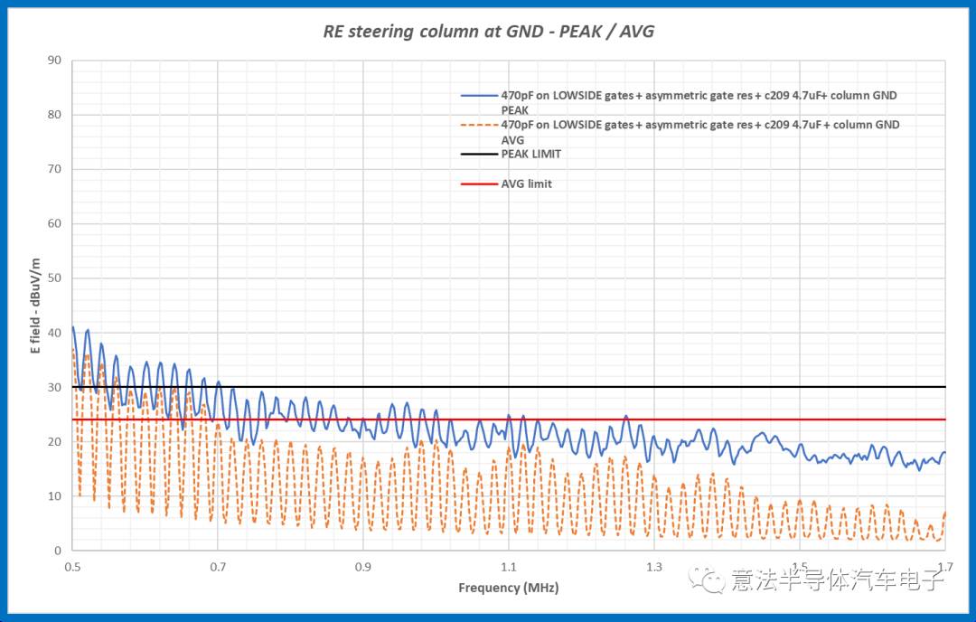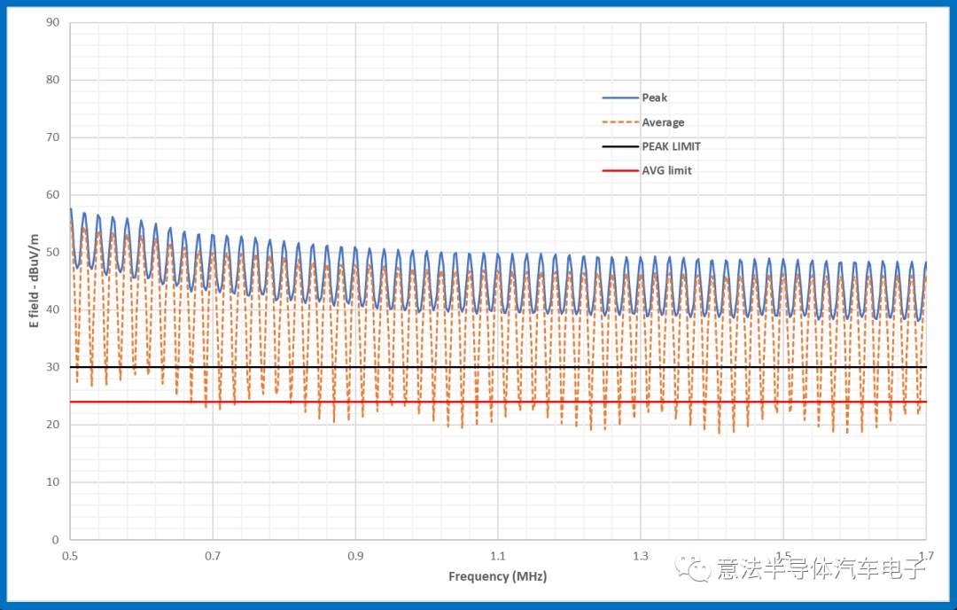 這個解決方案使0.9 MHz至1.7 MHz頻段內(nèi)的輻射強(qiáng)度低于CISPR 25標(biāo)準(zhǔn)的規(guī)范限值。