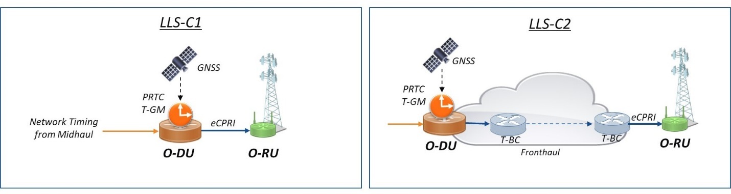 與LLS-C2一樣,網絡時間可以通過完全感知或部分感知交換芯片在前傳網絡中傳播。在某些情況下,DU可以作為T-BC參與將時間傳遞給RU的過程。