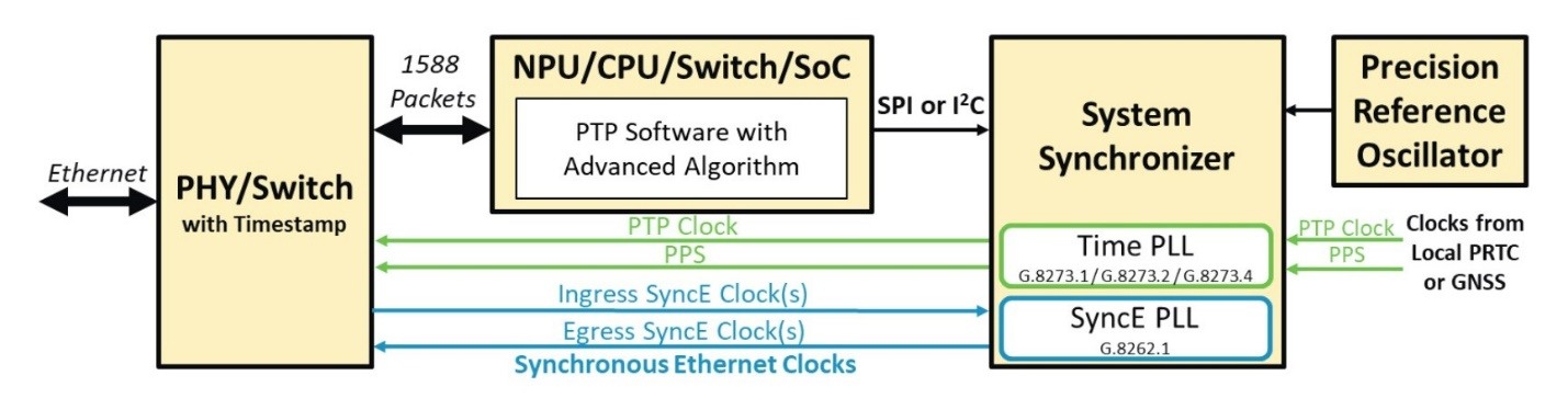 圖3.網絡設備會將PTP軟件、系統(tǒng)同步器、PLL和時間戳工具搭配使用。