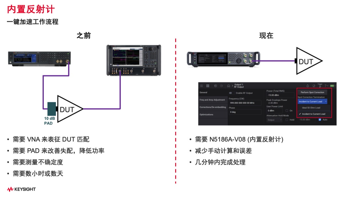 而據(jù)劉斌介紹,5G或Wi-Fi信號的調(diào)制格式變得越來越復(fù)雜,對于功率的要求也越來越高??蛻粼谑褂眯盘柊l(fā)生器進(jìn)行信號輸出的時候,可能會與待測件之間發(fā)生失配的情況,導(dǎo)致其很難判斷到底是信號的問題還是待測件的問題。
