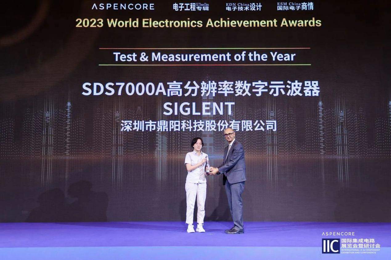 鼎陽科技本次參展展品SDS7000A系列數(shù)字示波器除了受到工程師們廣泛關(guān)注外,在與IIC國際集成電路會(huì)議同期舉辦的全球電子成就獎(jiǎng)的頒獎(jiǎng)典禮上,SDS7000A亦以其強(qiáng)悍的性能斬獲由ASPENCORE主辦的全球電子成就獎(jiǎng)——年度測(cè)試與測(cè)量獎(jiǎng)。