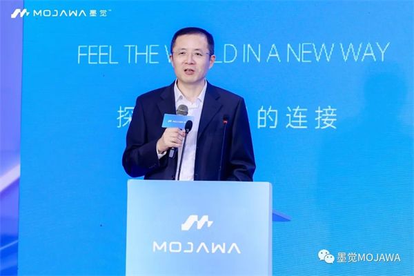 盛會(huì)啟幕,公司創(chuàng)始人曹洪斌先生開場(chǎng)致辭,他表達(dá)了對(duì)全場(chǎng)領(lǐng)導(dǎo)及來賓的熱烈歡迎。他圍繞創(chuàng)業(yè)史、核心技術(shù)、業(yè)務(wù)發(fā)展情況三大板塊來全面解析墨覺品牌。回顧了墨覺從0到1的發(fā)展歷程,產(chǎn)品研發(fā)團(tuán)隊(duì)以“幫助用戶探索世界,建立連接”為宗旨,現(xiàn)已推出三代骨傳導(dǎo)耳機(jī)。