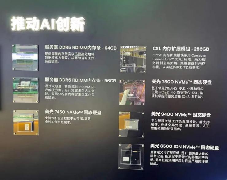 為應對這些挑戰(zhàn),加速數(shù)據(jù)中心的架構演進,最終推動實現(xiàn)各式AI應用創(chuàng)新,美光推出了一系列前沿服務器內存和存儲產品。