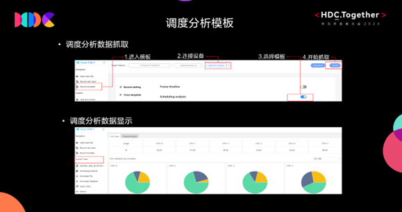 具體操作過(guò)程首先開(kāi)發(fā)者可選擇左側(cè)導(dǎo)航欄中的“模板抓取(Record Template)”,然后連接設(shè)備,選擇調(diào)度分析模板,開(kāi)始抓取操作;待抓取完成后,就可以通過(guò)導(dǎo)航欄中的Scheduling Analysis自動(dòng)進(jìn)行數(shù)據(jù)分析和顯示。調(diào)度分析模板可以按照CPU粒度和線程粒度進(jìn)行數(shù)據(jù)分析和展示。通過(guò)CPU粒度分析,開(kāi)發(fā)人員可用來(lái)查看即CPU資源在被哪些任務(wù)使用。相對(duì)應(yīng)可快速分析以下場(chǎng)景: