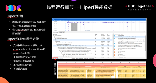 另Hiperf是HarmonyOS NEXT所提供的能力,可用來(lái)周期訪問(wèn)cpu的運(yùn)行棧,導(dǎo)出調(diào)用棧,不受系統(tǒng)打點(diǎn)影響。目前Smart Perf Host支持能力如下: