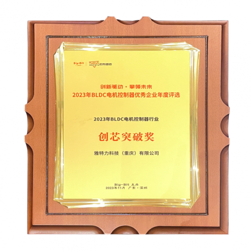 雅特力科技榮獲“2023年BLDC電機(jī)控制器行業(yè)創(chuàng)芯突破獎(jiǎng)”